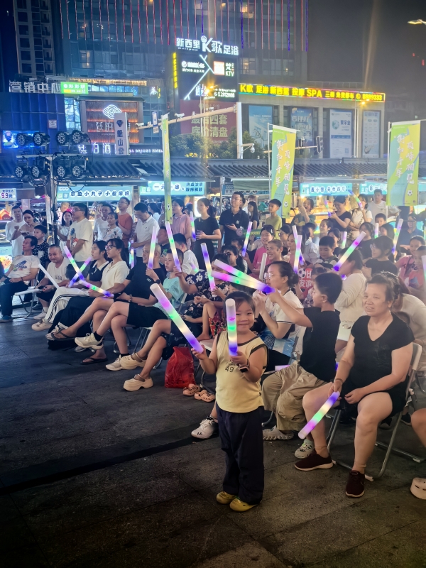 夜幕降臨,華燈初上,弘陽廣場上人頭攢動(dòng),熱鬧非凡。商業(yè)體外墻上的高清大屏里,正實(shí)時(shí)直播著“湘超”聯(lián)賽的精彩賽事。球迷們圍坐在屏幕前,眼睛緊緊盯著屏幕,時(shí)而為精彩的進(jìn)球歡呼雀躍,時(shí)而為緊張的防守捏一把汗?,F(xiàn)場的音響效果震撼人心,將比賽的激情傳遞給每一位觀眾。