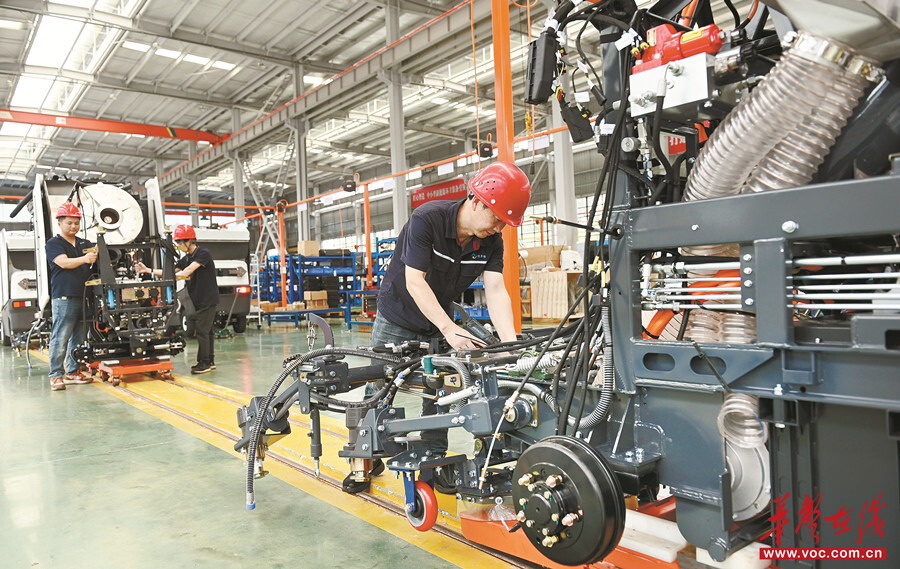 10月2日,洞口經濟開發區紐恩馳(湖南)環境產業有限公司,工人在生產新能源環衛車。滕治中 攝(湖南圖片庫)
