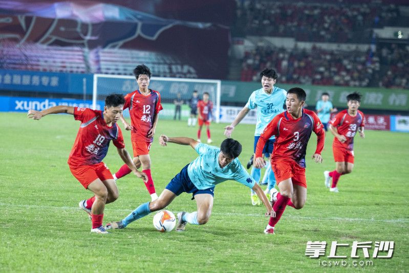 比賽開始后,婁底隊(duì)率先發(fā)力,第3分鐘,婁底隊(duì)27號(hào)球員盧智凱以一記有力的頭球,攻破大灣區(qū)湖南人隊(duì)球門。不過,在上半場補(bǔ)時(shí)階段,大灣區(qū)湖南人隊(duì)先是由50號(hào)球員范家麒點(diǎn)球破門扳平比分,隨后由30號(hào)球員彭天宇左路突破射門再進(jìn)一球,瞬間反超比分,領(lǐng)先進(jìn)入下半場。