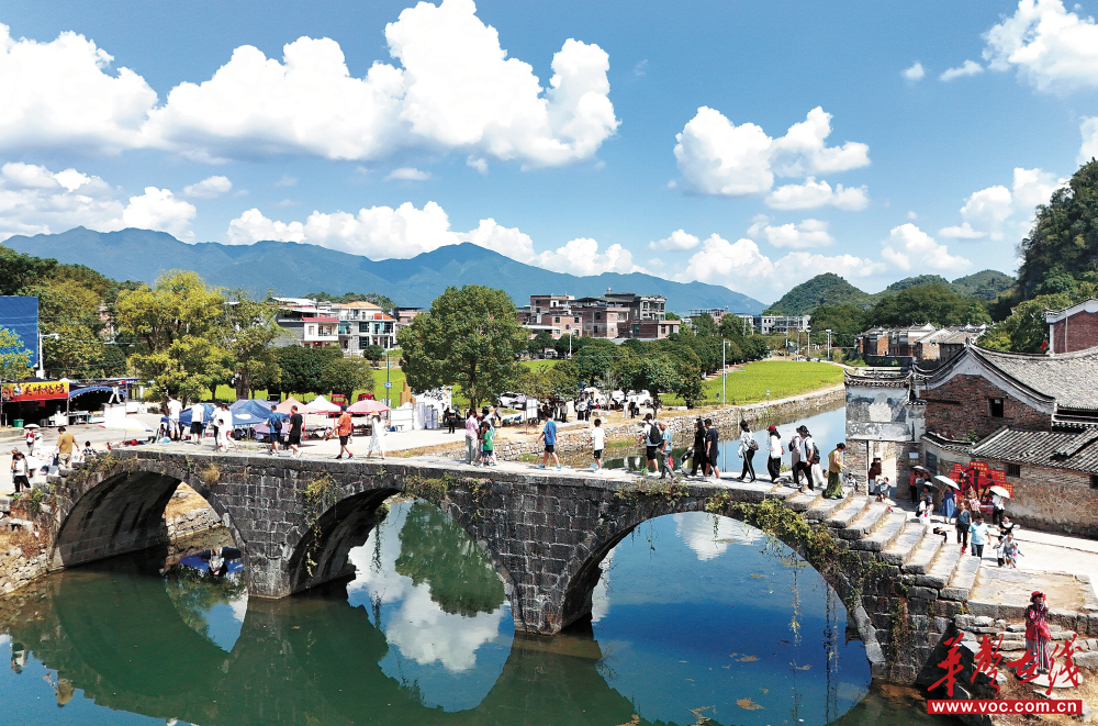 10月4日,游客在江永縣千年古村上甘棠村領略秋日田園風光。雙節假期,該村迎來旅游高峰。 田如瑞 攝(湖南圖片庫)