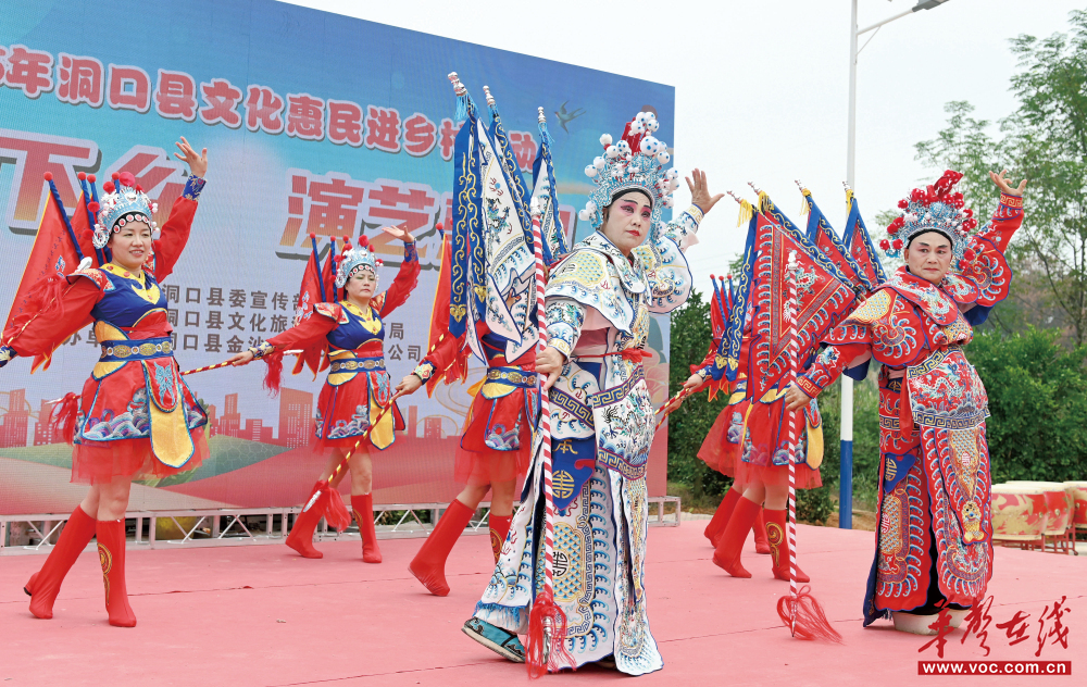 10月5日,洞口縣南泥園藝場,演員在表演文藝節目。國慶中秋假期,該縣組織文藝工作者深入鄉村開展送戲下鄉演出活動,豐富群眾假期文化生活。滕治中 攝(湖南圖片庫)