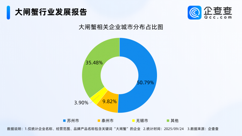 秋風(fēng)起,蟹腳癢,又到了一年一度的大閘蟹消費(fèi)黃金季。今年,江蘇核心產(chǎn)區(qū)的大閘蟹迎來(lái)“雙升”局面——產(chǎn)量與品質(zhì)雙雙提升,而背后的產(chǎn)業(yè)格局更是暗藏玄機(jī)。企查查最新數(shù)據(jù)顯示,全國(guó)現(xiàn)存大閘蟹相關(guān)企業(yè)達(dá)7970家,其中蘇州一市便以50.79%的占比“獨(dú)占鰲頭”,成為當(dāng)之無(wú)愧的“蟹都”。