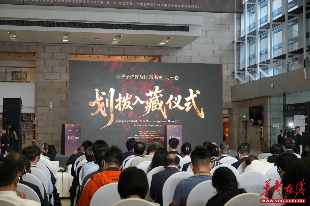 華聲在線10月13日訊(全媒體記者 劉玉鋒 彭美涵 通訊員 郝一惟)今天上午10時20分,長沙子彈庫戰國帛書第二、三卷《五行令》與《攻守占》劃撥入藏儀式在湖南省博物館舉行。國家文物局將長沙子彈庫戰國帛書第二、三卷《五行令》與《攻守占》文物132件(組)劃撥入藏湖南省博物館。