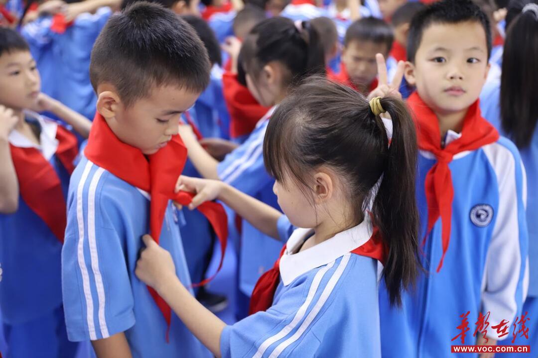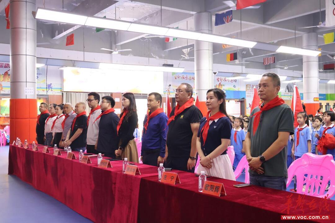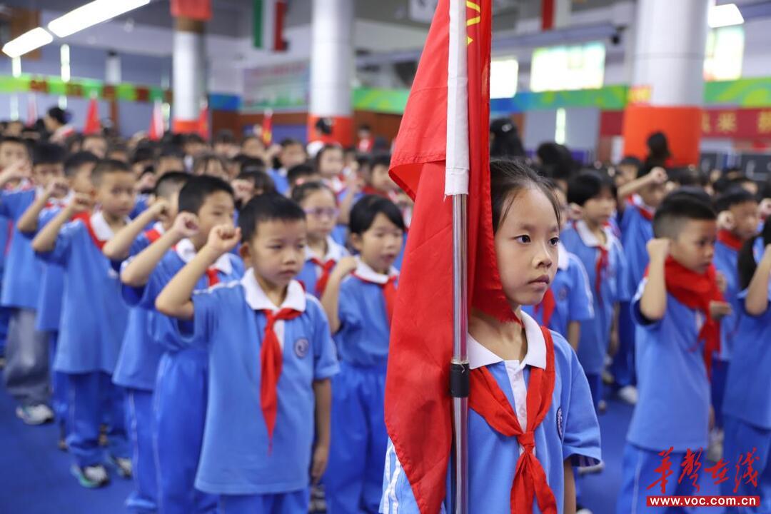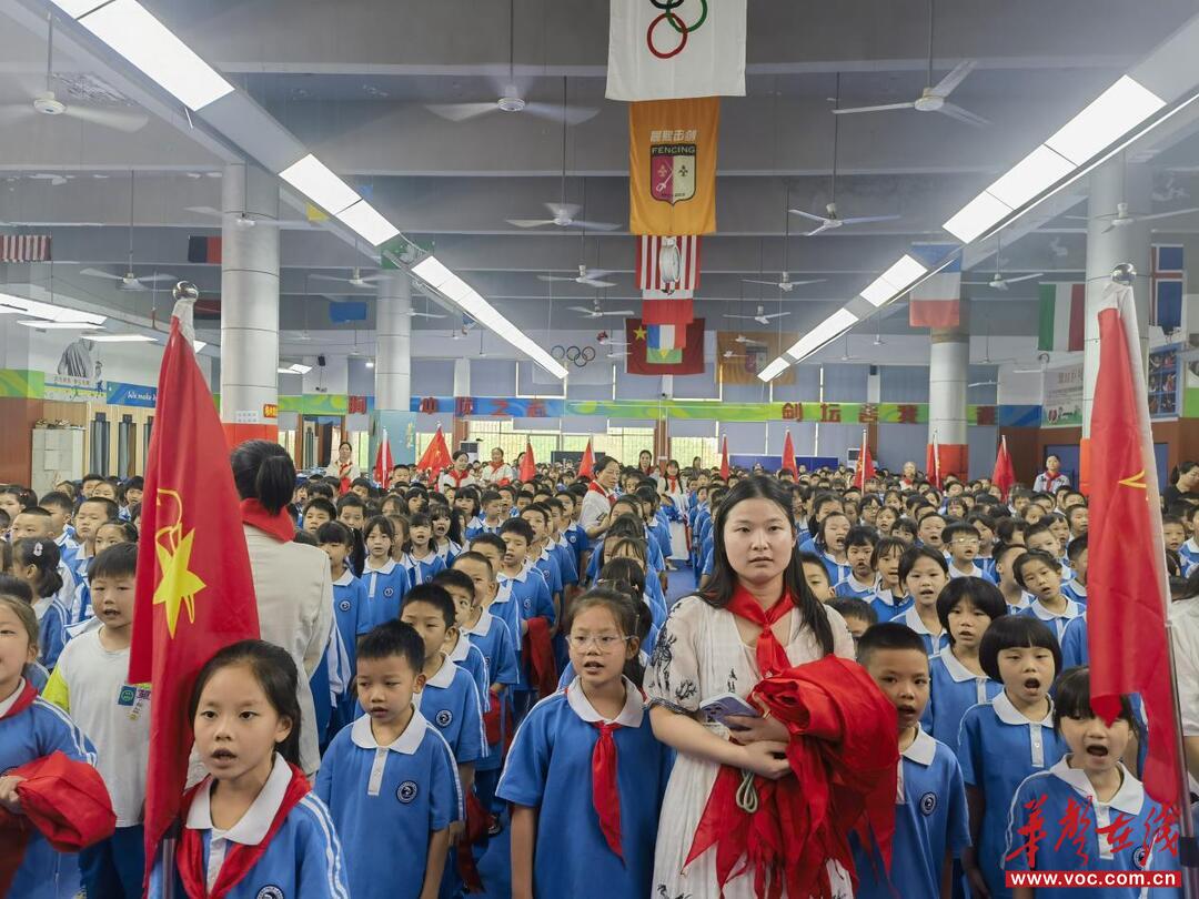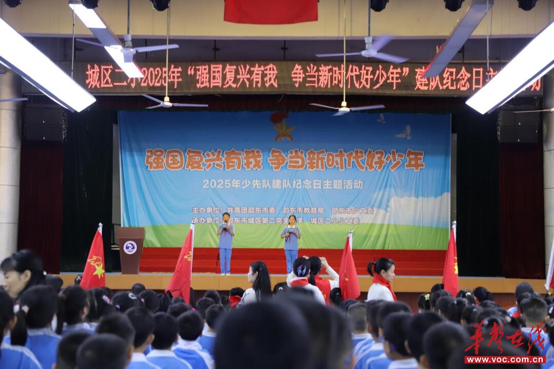 華聲在線10月13日訊(通訊員 洪永祥 唐軒 張小玲)金秋十月,隊旗飄揚。10月13日上午,邵東市城區二小以“強國復興有我,爭當新時代好少年”為主題舉行少先隊建隊日暨新隊員入隊儀式。共青團邵東市委副書記趙文攀、辦公室主任劉文靜,邵東市教育局團工委書記王紅旭,宋家塘街道中心學校機關黨委副書記、校長趙軍輝及中心學校領導班子,城區二小領導班子成員與師生代表齊聚一堂,共同見證這一時刻。