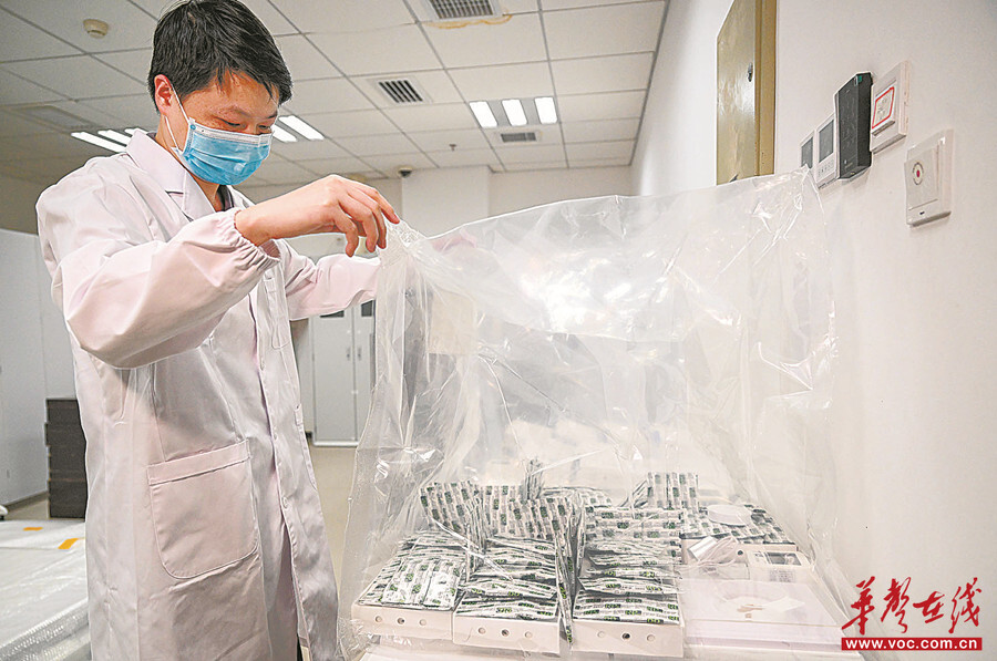 10月10日,湖南省博物館文保中心,工作人員在開展模擬實驗,科學論證帛書微生物消殺方案。