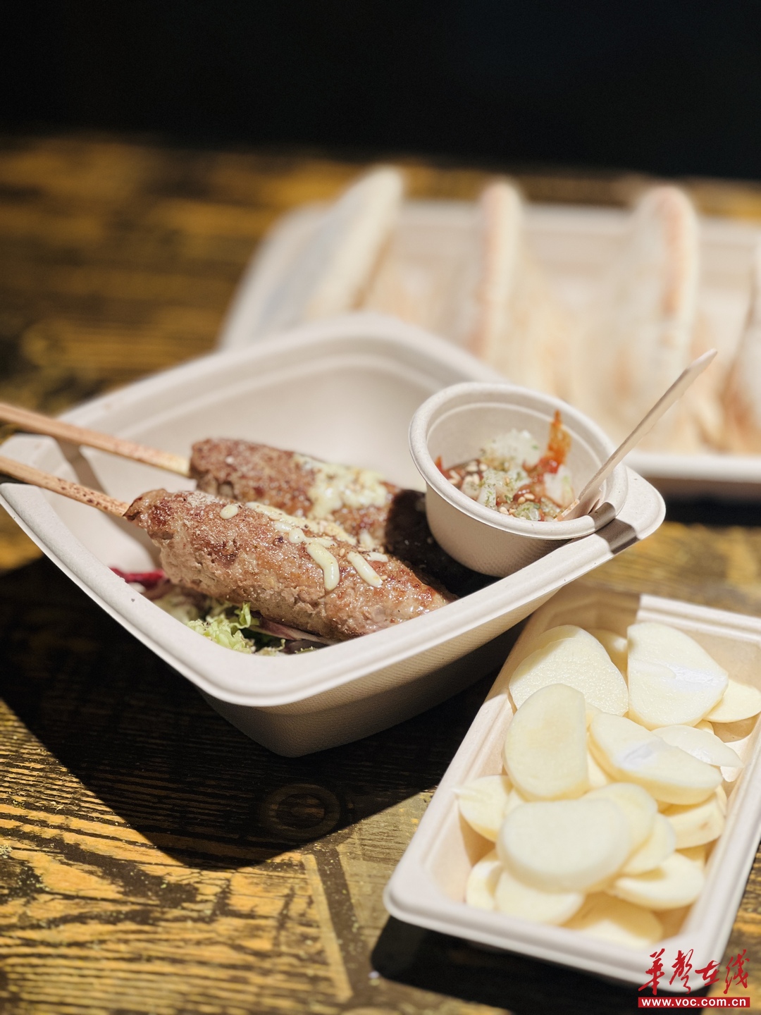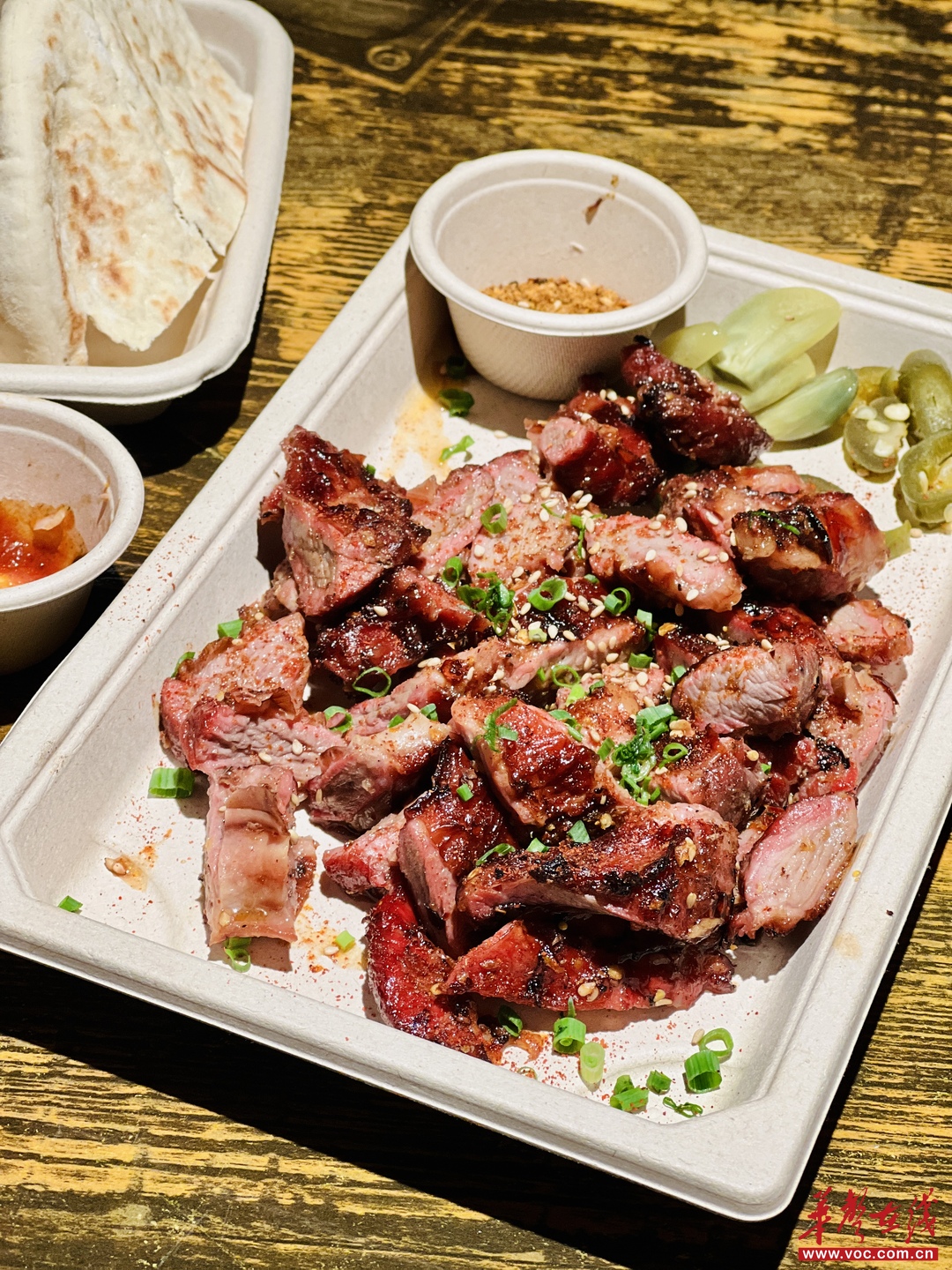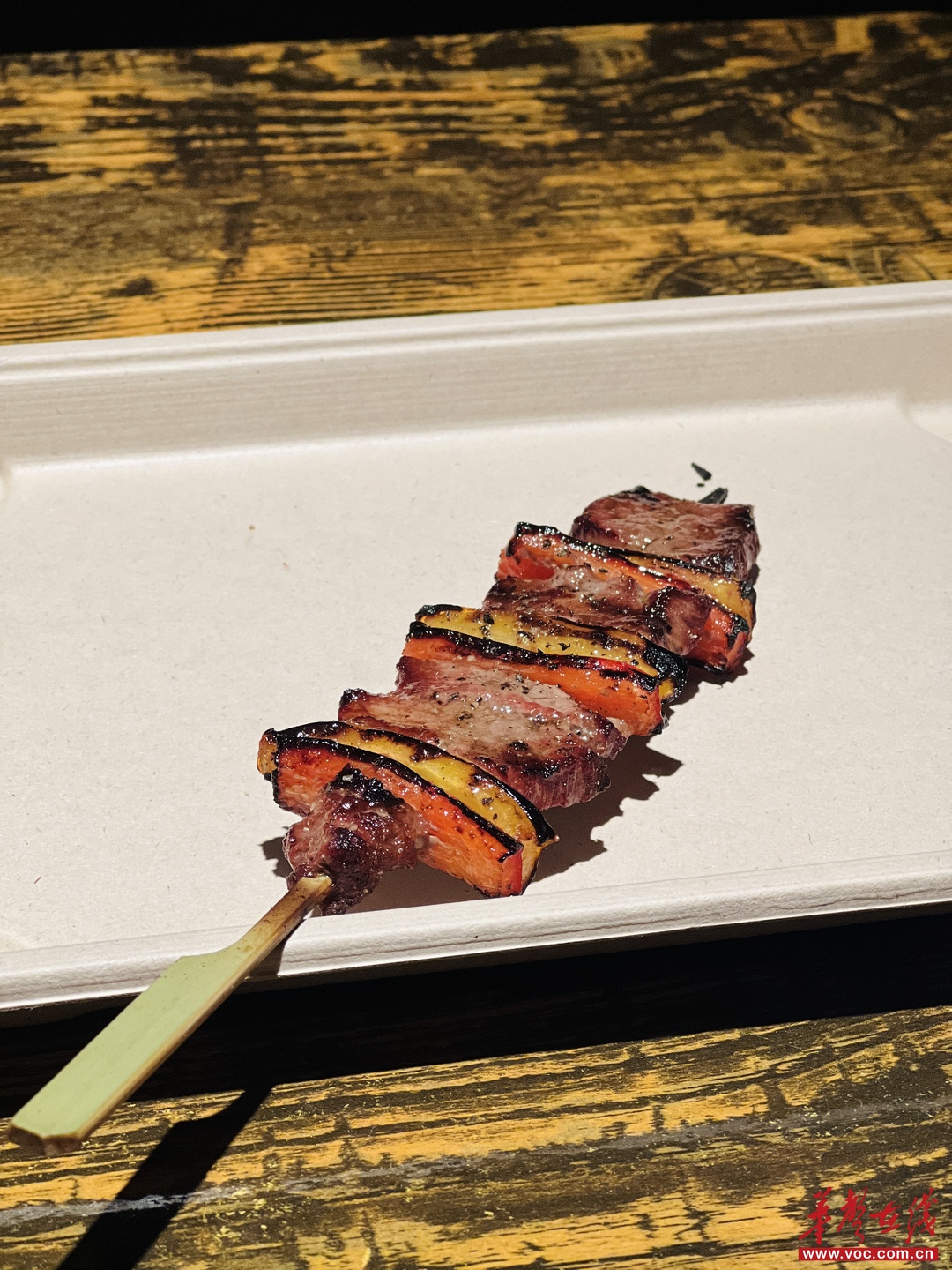 特意挑戰了小唐從來不吃的菜品:煙熏大油邊,味道出乎意料,煙熏得恰到好處,表皮的油脂經過煙熏之后油膩感會減少很多,像是烘烤過的臘肥腸表皮,配上旁邊的臘八蒜和酸黃瓜,完全沒有油邊的肥膩。剛吃得意猶未盡,又上了牛漢堡肉棒配皮塔餅,主理人特意交代,可以把肉棒攪碎,放到餅里吃,再來點特制辣醬、酸辣椒絲、洋蔥碎、大頭蒜末,中式夾餅完美get,美中不足就是有點干,如果肉棒的汁水再豐富一點會更好。最讓小唐驚喜的是和牛肋條彩椒串,怎么會有這么好吃?一口下去滿滿的肉香,一口爆汁,配上柔軟剛好的彩椒,調味并不重,完全只在凸顯肉的本味,絕對是小唐心目中長沙最好吃的和牛串。