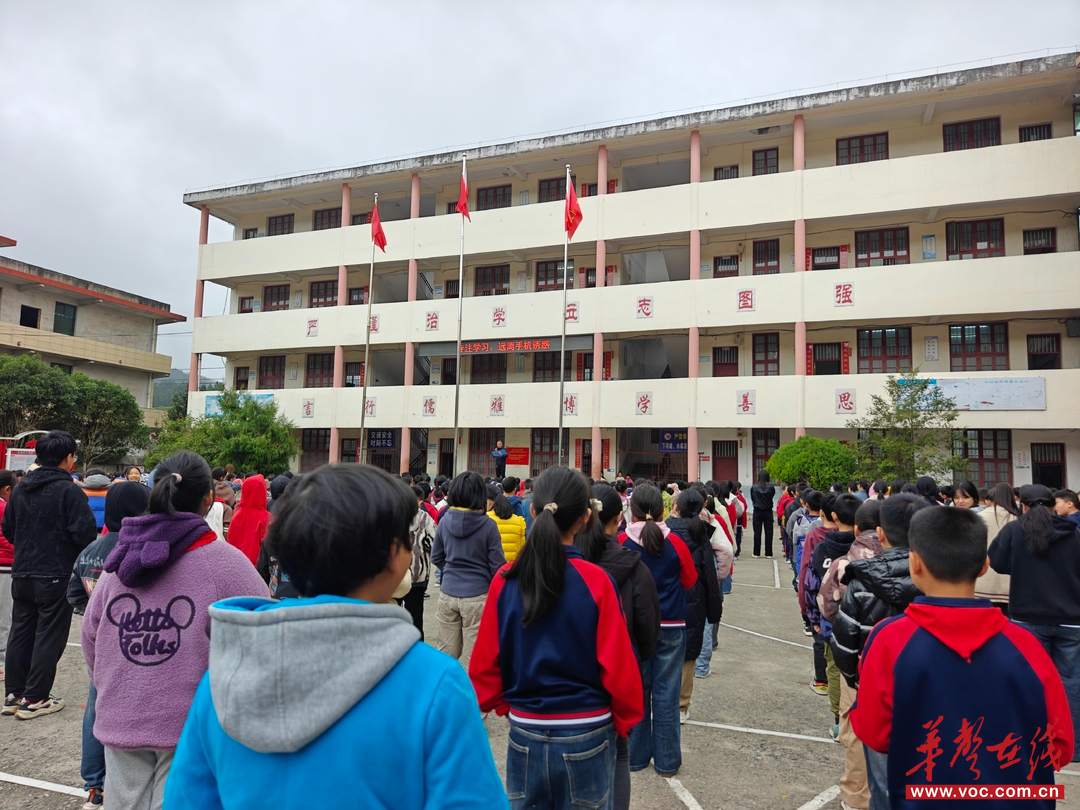 隨后,金石橋鎮中心學校黨總支書記、校長陽迪堯給全體師生上大思政課。他圍繞“愛黨愛國,專注學習,健康成長”發表講話,并向全體同學發出倡議:合理規劃使用時間,將更多精力投入閱讀、運動與實踐,以自律之心守護成長時光,用扎實行動追逐青春夢想。