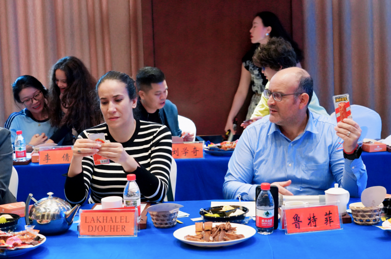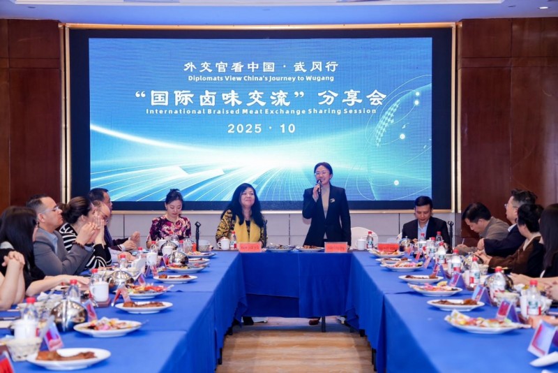 10月19日,【外交官看中國·武岡行】系列活動圓滿收官之際,一場高規格的“國際鹵味交流分享會”成為焦點。鄉鄉嘴作為武岡鹵味產業代表企業,受邀與來自意大利、阿爾及利亞、突尼斯等多國駐華外交官及外媒代表等展開深度交流,鄉鄉嘴以虎皮豆干實力圈粉,掀起一場以“正宗湖南香辣”為媒的國際文化對話。