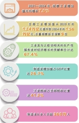 湖南工業(yè)經(jīng)濟(jì)量質(zhì)齊升。2021年至2024年,全省規(guī)模工業(yè)增加值年均增長(zhǎng)7%,高于全國(guó)平均水平;全部工業(yè)增加值從2020年的1.24萬(wàn)億元提升至2024年的1.56萬(wàn)億元,規(guī)模穩(wěn)居全國(guó)第9位。制造業(yè)增加值占GDP比重達(dá)26.7%,工業(yè)稅收占全部稅收比重達(dá)41.2%,制造業(yè)從業(yè)人員超過(guò)360萬(wàn)人,為富民強(qiáng)省提供了堅(jiān)實(shí)支撐。