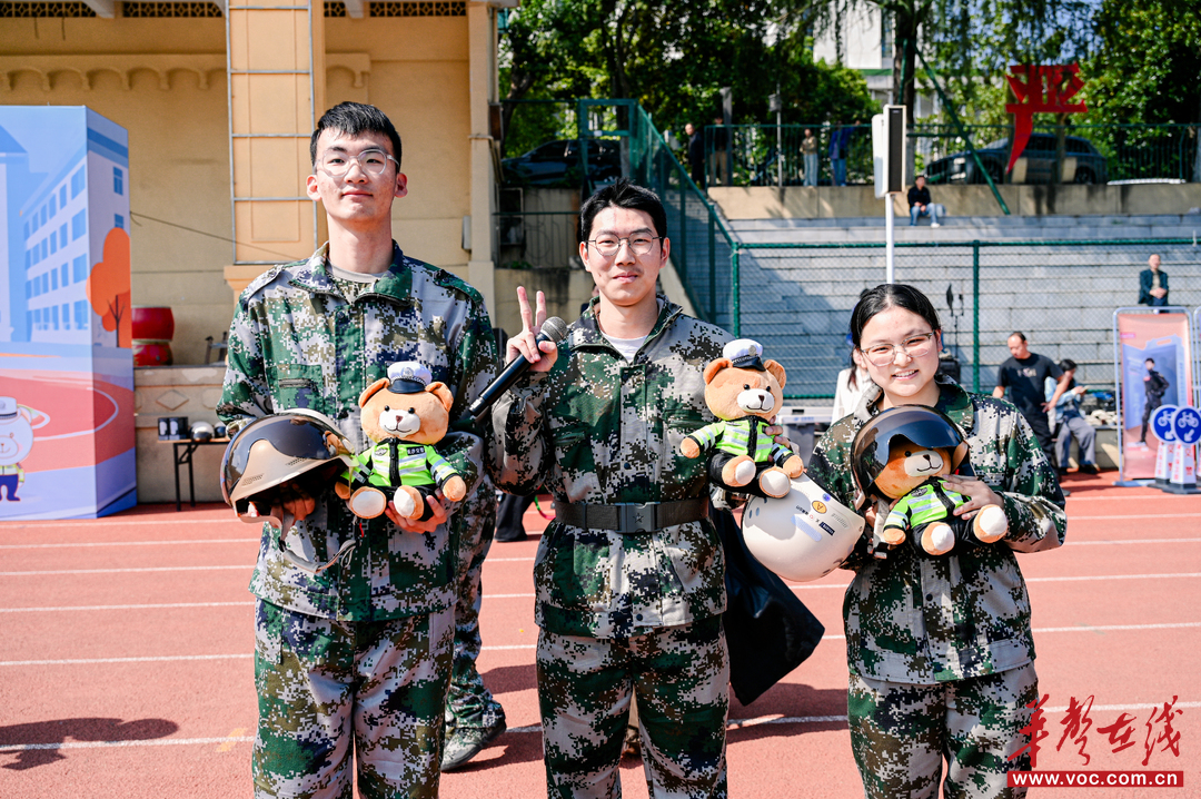 “方言說交通”環節中,長沙話、湘潭話版的“騎車戴盔,安全加倍”一出口,就引發全場爆笑跟學;“快問快答”環節里,新生們舉手如林,答對者接過定制頭盔、安全水杯等禮包時,歡呼聲接連不斷。?