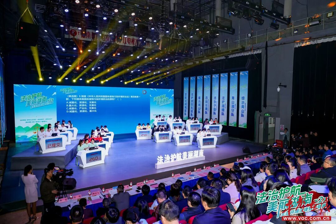 本次競賽以“以賽學法、以賽普法”為宗旨,構建了“線上全民參與+線下高校對決”的雙層賽事體系。線上賽面向社會各界開放,競賽題目涵蓋生態(tài)環(huán)境法律法規(guī)等內容,掀起141萬人次踴躍答題的全民學法用法熱潮。作為賽事重點環(huán)節(jié),高校賽道得到全省121所高校積極響應,經角逐,線上競賽積分排名前15名的高校選派戰(zhàn)隊進入現(xiàn)場競賽同臺競技,以專業(yè)比拼展現(xiàn)生態(tài)環(huán)境法治素養(yǎng),為美麗湖南建設注入青春力量。