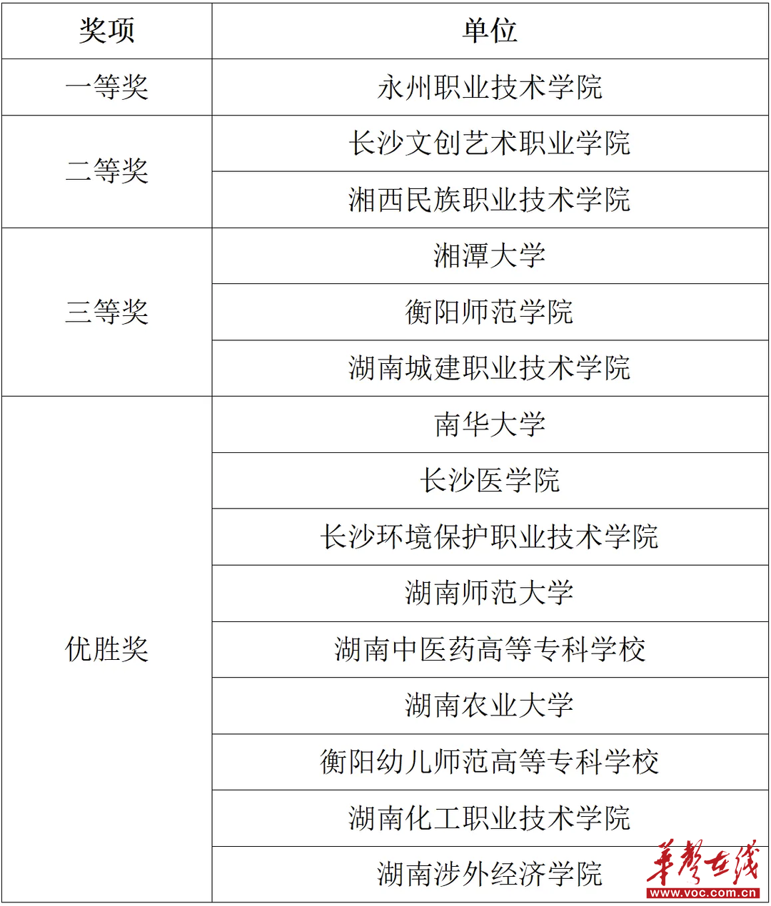 經過多輪激烈角逐,并經公證處公證,永州職業(yè)技術學院代表隊摘得桂冠,長沙文創(chuàng)藝術職業(yè)學院代表隊、湘西民族職業(yè)技術學院代表隊獲二等獎,湘潭大學代表隊、衡陽師范學院代表隊、湖南城建職業(yè)技術學院代表隊獲三等獎,湖南農業(yè)大學等9支代表隊獲優(yōu)勝獎。同時,綜合前期線上賽參加人數與積分情況,現(xiàn)場還為獲得線上競賽優(yōu)秀組織獎的部門及高校進行頒獎。