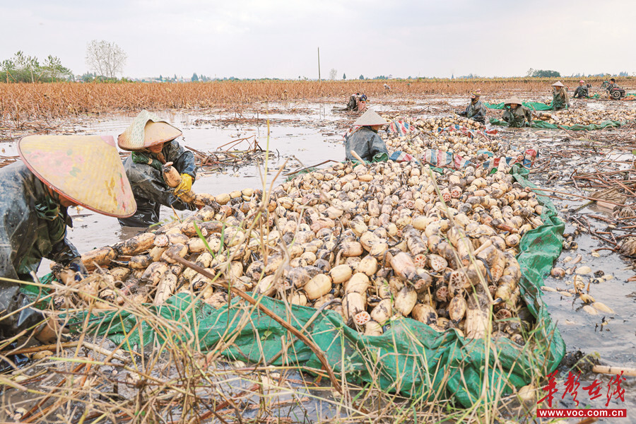 10月22日,南縣烏嘴鄉(xiāng)又東村,村民在采收蓮藕。時下,該村蓮藕迎來豐收季。近年來,該縣依托水土資源優(yōu)勢,因地制宜發(fā)展“藕+蝦”“藕+魚”等生態(tài)種養(yǎng)模式,既壯大了村集體經(jīng)濟,又帶動了村民就業(yè)增收。