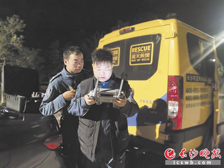 救援刻不容緩。隊員肖玉成第一時間載著2臺無人機、1臺移動電源和大量通信照明設備從隊部出發。晚上10時30分,隊員李敏才率先抵達山腳。緊接著,余廣、陳柏穆、張敏、許輝等隊員也陸續到位。