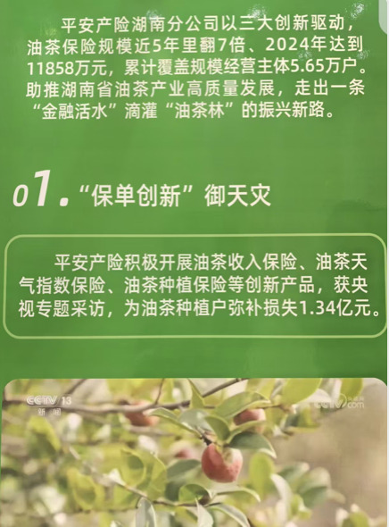 根據(jù)災(zāi)害發(fā)生概率和強(qiáng)度,湖南平安產(chǎn)險(xiǎn)在油茶種植保險(xiǎn)外還新創(chuàng)油茶收入保險(xiǎn)、油茶天氣指數(shù)保險(xiǎn)等產(chǎn)品,2022年至2024年累計(jì)為1.9萬(wàn)油茶種植戶的167.4萬(wàn)畝油茶林,提供43.84億元風(fēng)險(xiǎn)保障,截至目前已為油茶種植戶彌補(bǔ)損失1.34億元,顯著保障了種植戶利益。
