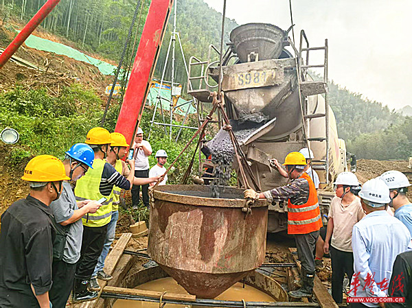 桂郴高速塘沖河大橋首根樁基澆筑完成。通訊員供圖
