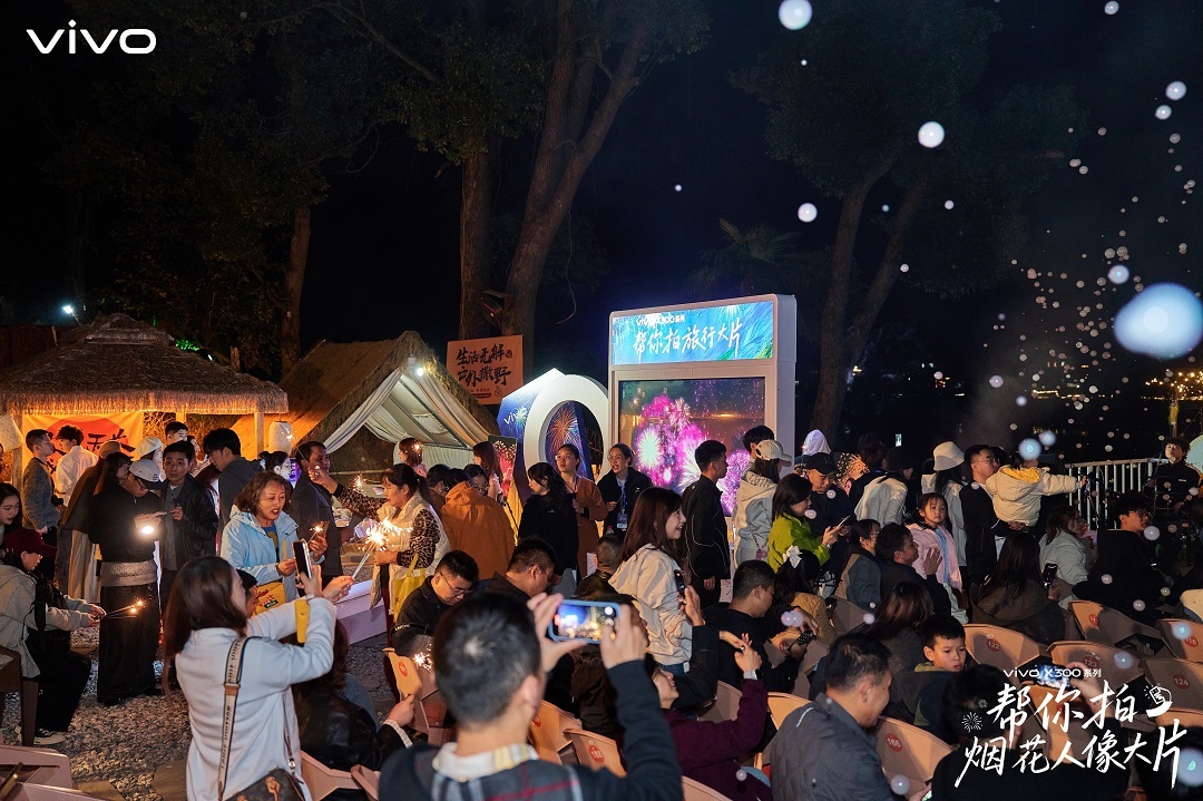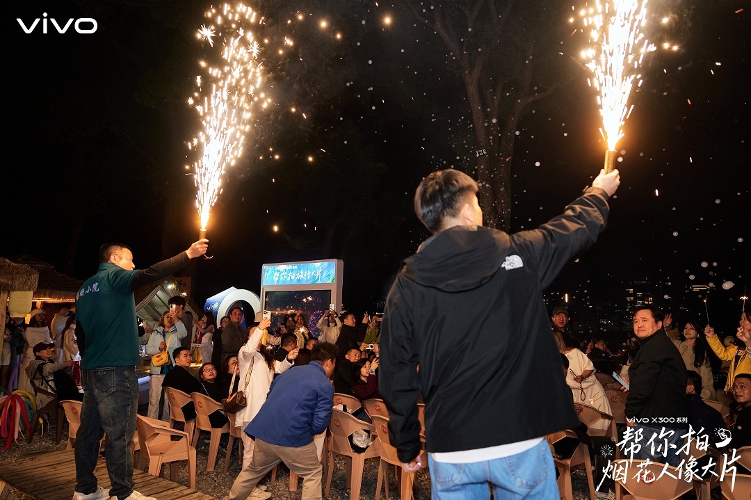活動現(xiàn)場特別設(shè)置了vivo X300系列真機體驗區(qū),由vivo官方攝影師現(xiàn)場指導(dǎo)拍攝技巧。參與者借助vivo X300的專業(yè)影像系統(tǒng),成功捕捉到六國團隊打造的創(chuàng)意焰火表演,記錄下無數(shù)煙花綻放的精彩瞬間。深受游客喜愛的“煙花人像”體驗區(qū),更是幫助參與者留下了與絢麗煙花同框的浪漫回憶。
