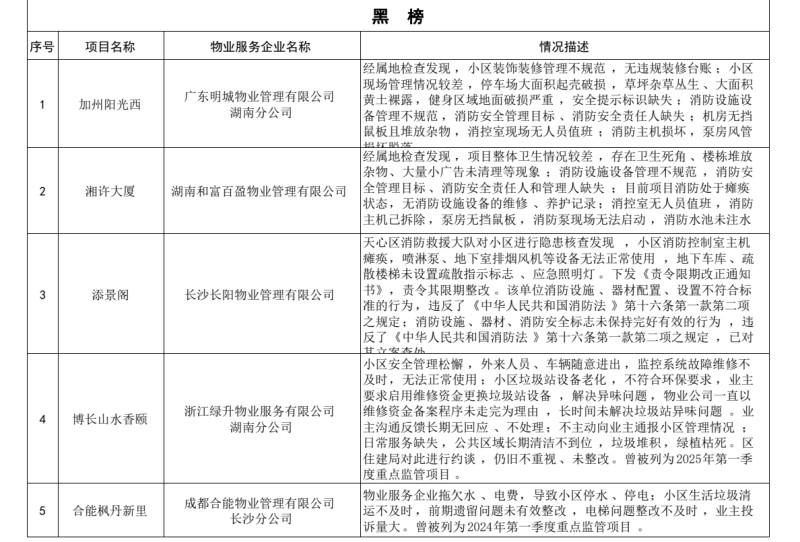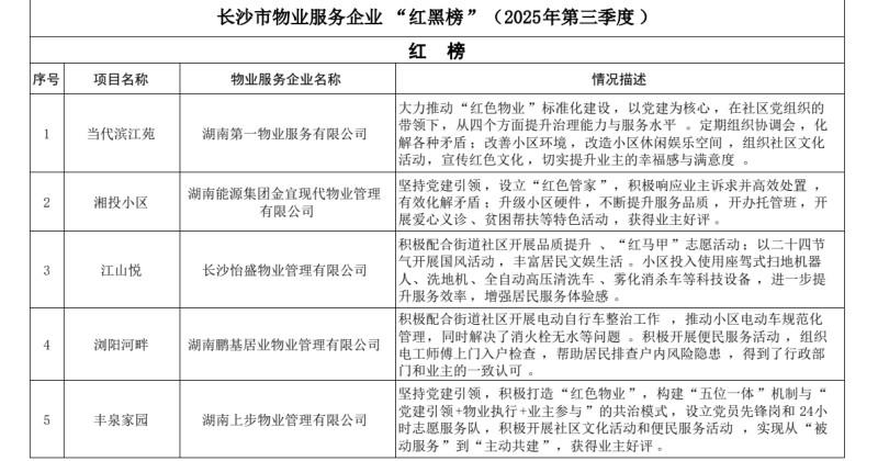 附件:長沙市物業(yè)服務(wù)企業(yè)“紅黑榜”(2025年第三季度)