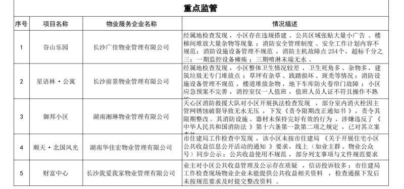 此次名單篩選嚴格依據(jù)《長沙市文明社區(qū)(小區(qū))實驗點位建設(shè)工作方案》《長沙市住宅小區(qū)物業(yè)服務(wù)質(zhì)量提升行動方案》,結(jié)合區(qū)縣(市)行業(yè)主管部門日常監(jiān)管、信訪投訴情況,并征求相關(guān)部門意見后確定。其中,在文明小區(qū)建設(shè)、“整治物業(yè)服務(wù)履約不到位、侵占業(yè)主公共收益”及服務(wù)品質(zhì)提升行動中表現(xiàn)突出的企業(yè),被納入“紅榜”;多次被舉報投訴或問題整改不及時的企業(yè),劃入“重點監(jiān)管”范圍;所管項目存在重大問題且不配合整改、整改不到位的企業(yè),列入“黑榜”。