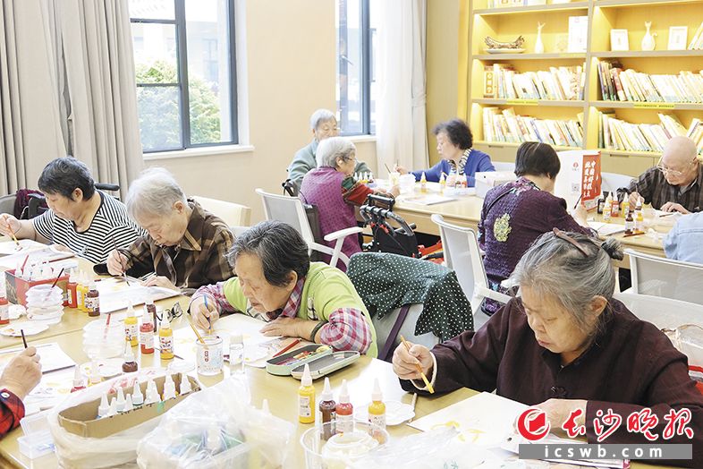 老人在敬老院中做手工,晚年生活變得豐富多彩。長沙晚報(bào)全媒體記者 劉俊 攝
