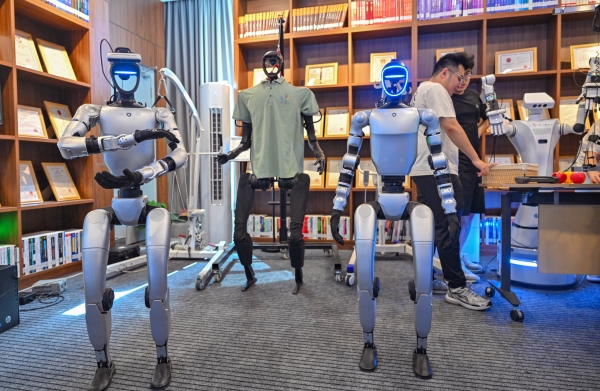 湘江實驗室內,人形智能機器人正“列隊”展示。郭立亮 鄒尚奇 攝