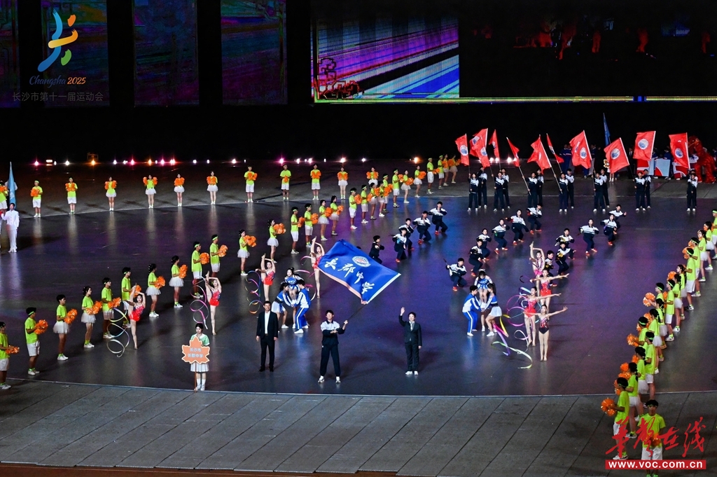 開幕式分為開場儀式與文體表演兩大部分。開場儀式在暖場片《全民運動·幸福長沙》的畫面中拉開帷幕,隨后21支代表團依次入場,包括市直機關、9個區(qū)縣(市)、10所直屬學校及裁判員代表團隊。開幕式文體表演以“潮動、律動、萌動、燃動”為敘事線索,通過10個原創(chuàng)節(jié)目、四個篇章層層遞進,既有精神高度,又有煙火溫度。