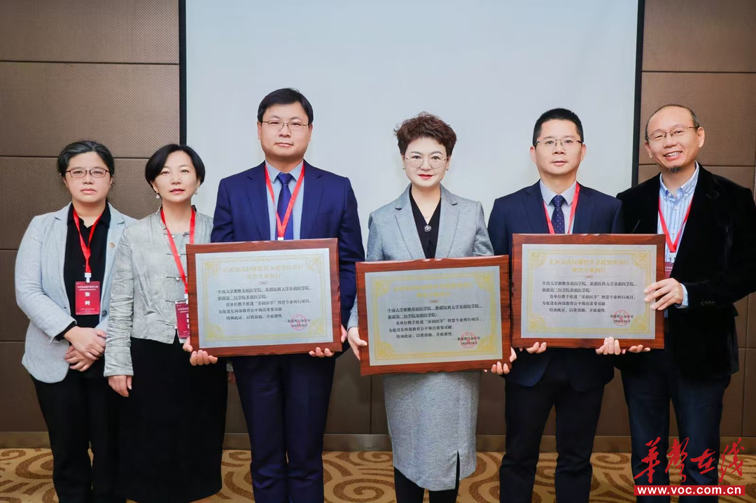論壇現場,“專業西行”啟動會舉行,東西部高校課程共享聯盟慕課西部行辦公室為中南大學湘雅基礎醫學院、新疆醫科大學基礎醫學院、新疆第二醫學院基礎醫學院頒發“東西部高校課程共享聯盟西部行-智慧專業西行”證書。三所學院在推動東西部醫學教育資源均衡發展上達成深度共識,將開展聯合教研、系列分享會、共上一堂課等教學活動,分享更多智慧課程,為后續跨區域教育協同實踐搭建起堅實框架。