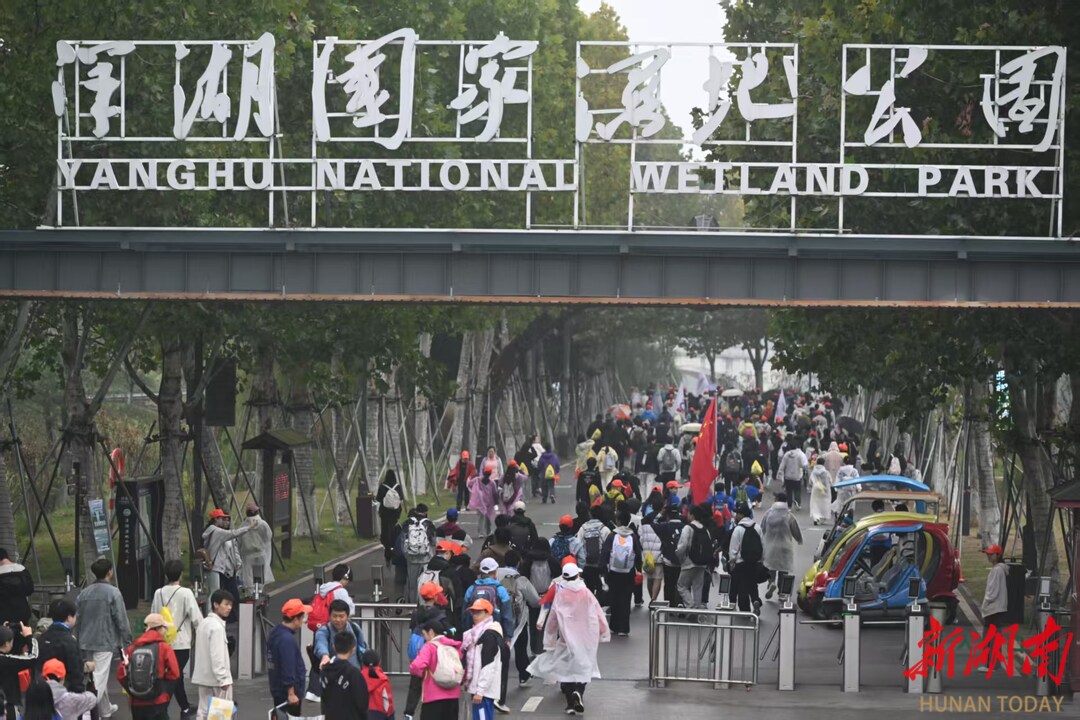 華聲在線11月1日訊(見習記者 黃家宸 通訊員 熊星 攝影 郭立亮 黃詩淇)11月1日清晨7時45分,中國建設銀行湖南省分行·2025湖南(秋季)百公里在長沙洋湖國家濕地公園白鷺廣場鳴槍啟程。數千名毅行者迎風冒雨,踏上跨越長、株、潭三城的征程。