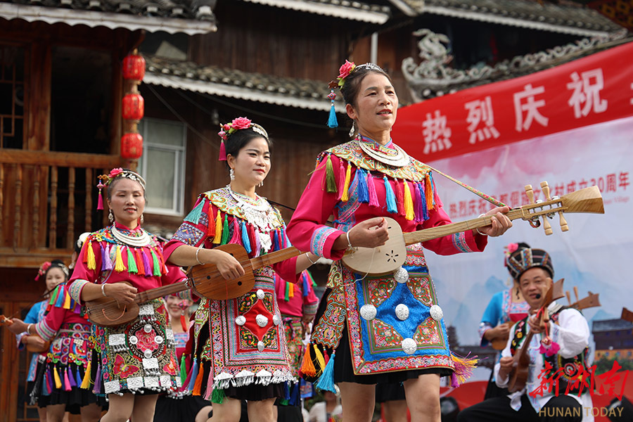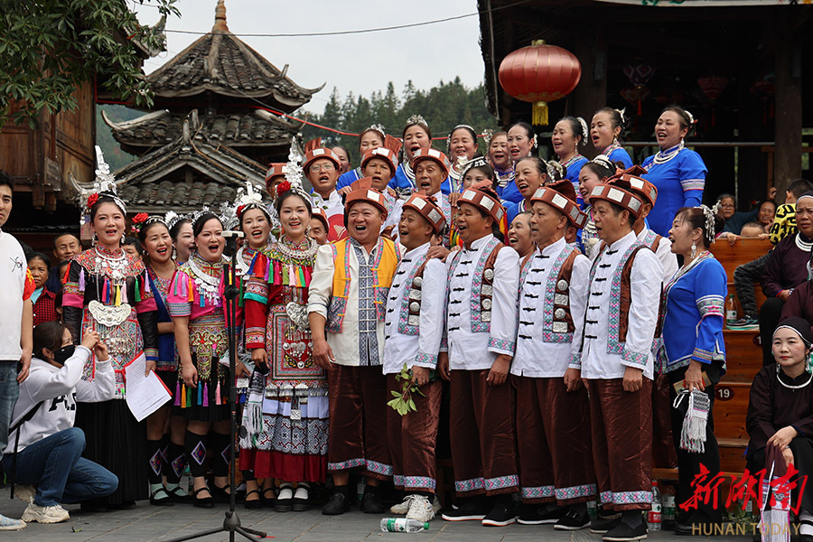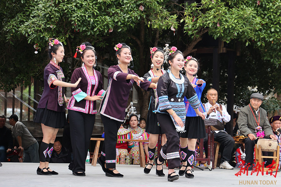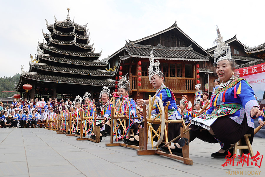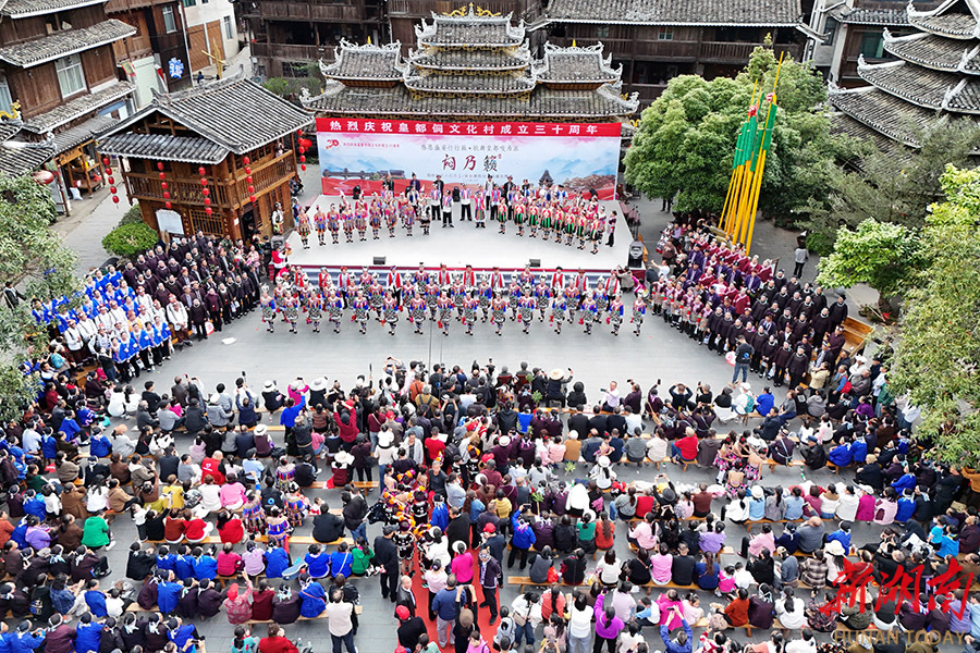 11月1日,通道侗族自治縣坪坦鄉(xiāng)皇都侗文化村舉辦村慶30周年慶典。村民表演侗族大歌、蘆笙舞等傳統(tǒng)節(jié)目,各族群眾歡聚一堂,共慶村慶活動(dòng),吸引眾多游客前來(lái)感受多彩民族文化。 李尚引 攝(湖南圖片庫(kù))