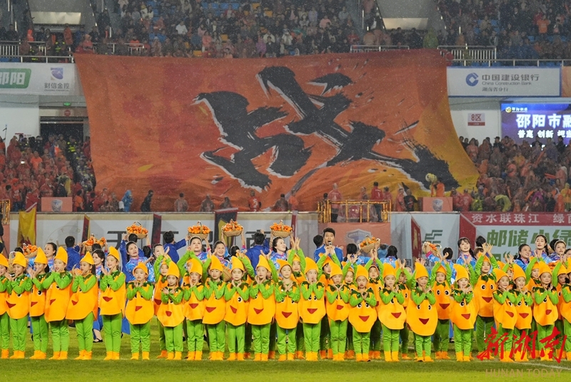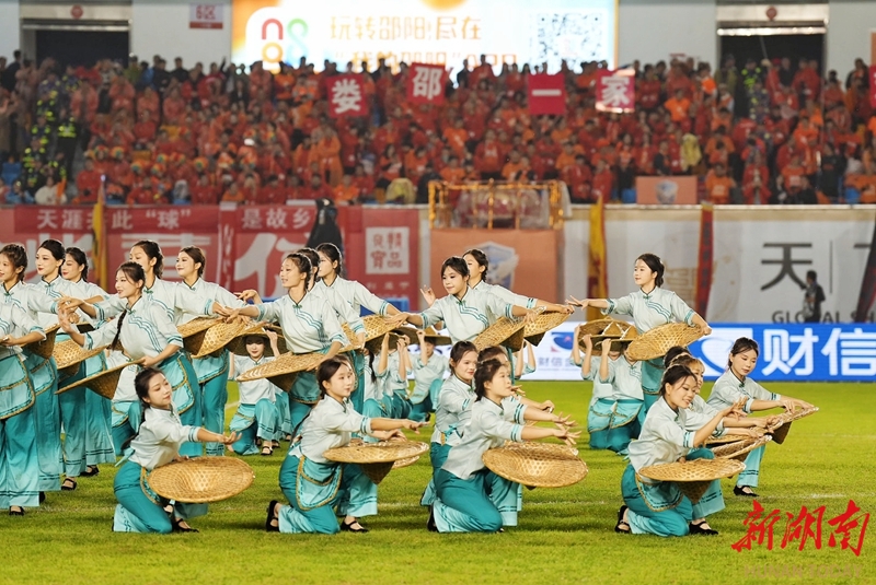 11月2日晚,文藝表演精彩紛呈。當晚,2025湘超聯賽第八輪,邵陽隊主場對陣婁底隊,最終雙方0比0戰平。申興剛 攝(湖南圖片庫)