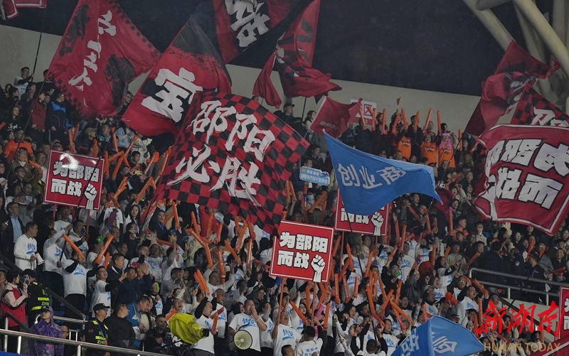 11月2日晚,主隊球迷在加油助威。當晚,2025湘超聯賽第八輪,邵陽隊主場對陣婁底隊,最終雙方0比0戰平。申興剛 攝(湖南圖片庫)