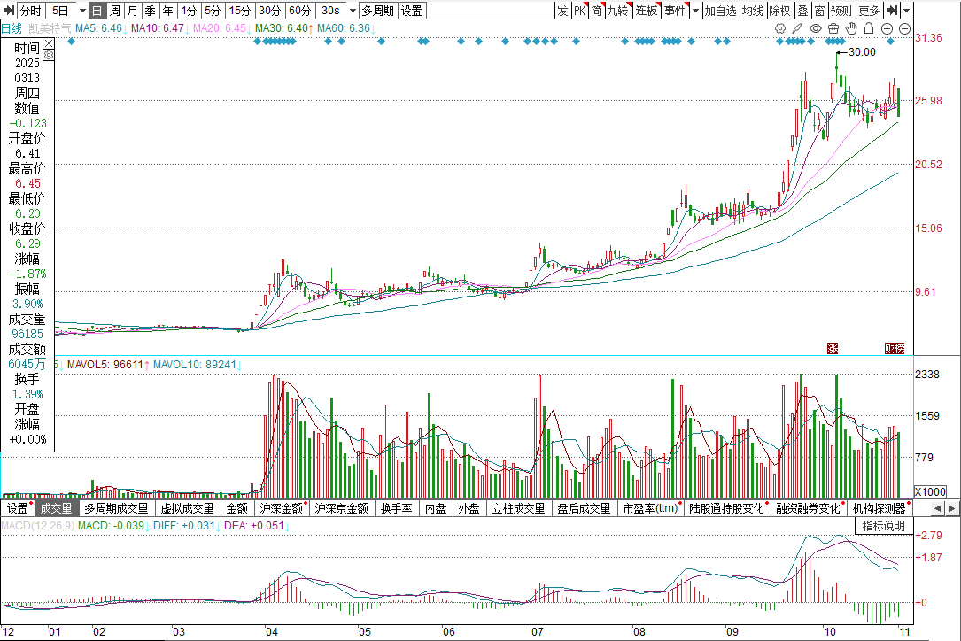 再看股價漲幅,凱美特氣作為氫能源板塊上市公司,今年以來,實現(xiàn)299.51%的股價漲幅,從1月2日收盤價5.97元/股,上漲到11月3日收盤24.49元/股,股價翻了三倍。