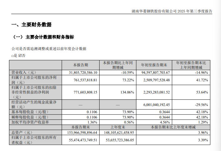 作為營收大戶,華菱鋼鐵毫無懸念又成為營收“冠軍”,年初至三季度末,營業(yè)收入為945.98億元,比上年同期下降14.96%。西部證券研報分析,華菱鋼鐵三季度業(yè)績表現(xiàn)平穩(wěn),單季度實現(xiàn)營收318.04億元,同比下降10.59%,原材料價格上漲侵蝕利潤。