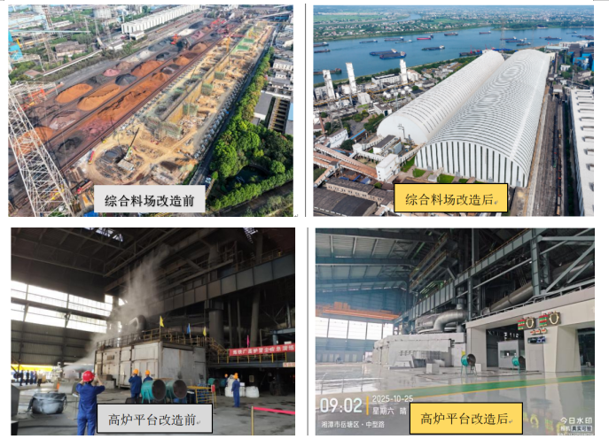 2019年以來,湘鋼、漣鋼分別累計投入超60億元、50億元,用于燒結、焦爐、高爐、轉爐、軋鋼、石灰、發電等全部工序脫硫脫硝除塵,以及綜合料場封閉、皮帶通廊封閉、除塵提質增效、超低排放一體化管控平臺建設等各百余項超低排項目建設及配套改造。同時建立車輛門禁及視頻系統,所有進出廠及廠內運輸車輛清潔運輸比例穩定達80%以上。通過高標準、高質量超低排放改造,湘鋼、漣鋼實現了“用礦不見礦、運料不見料、生產不見灰、一屏看全域、一網管環保”。