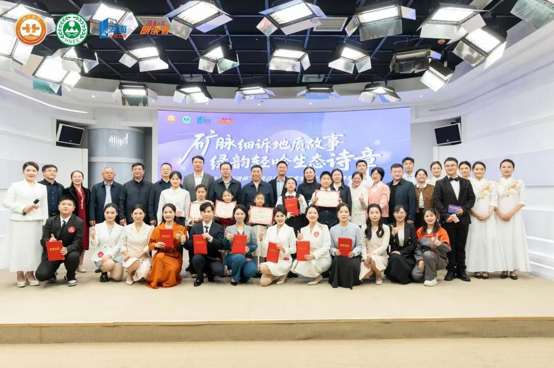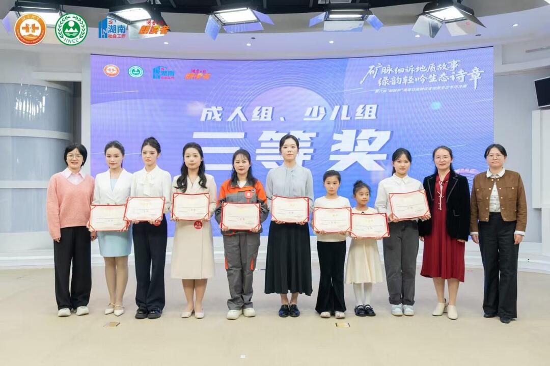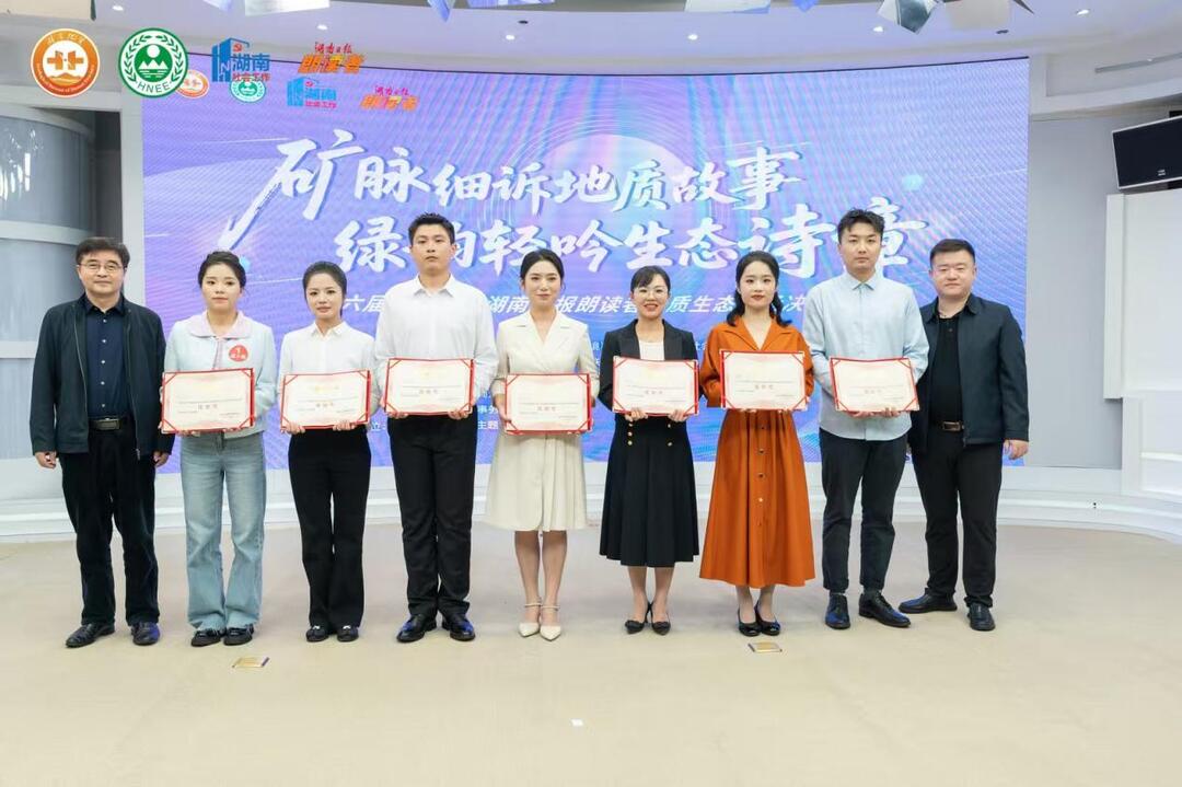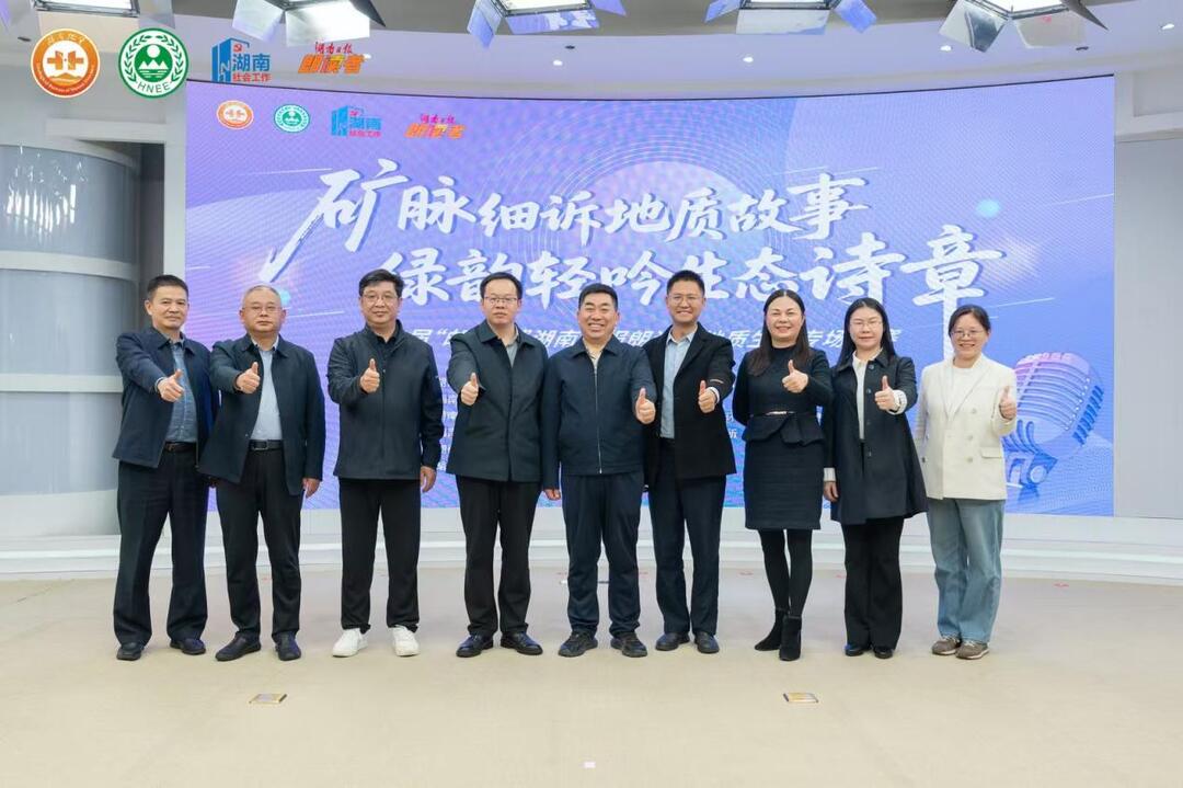 在決賽頒獎典禮的尾聲,湖南省地質院,湖南省生態環境事務中心,湖南省社會工作事務中心,華聲在線股份有限公司、湖南省地質院工礦所、水環所、生態所、遙感所、地信所相關負責人等共同登臺,按下湖南省地質生態系統第三屆“悅享書香”讀書行動的啟動按鈕。該行動將持續通過“悅享書香”平臺,展現湖南地質人、環保人以閱讀為媒、以文會友等方式傳承行業精神,讓湖南的地質之美、生態之韻、志愿精神之力被更多人聽見,為現代化新湖南建設提供源源不斷的文化支撐與精神動力。