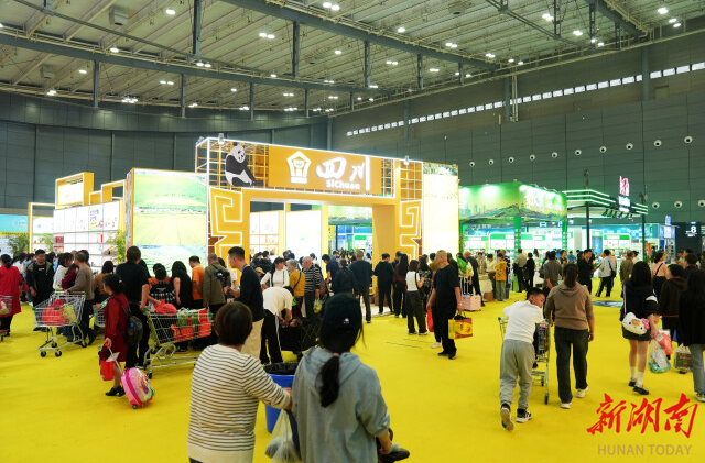(2023年10月29日,觀眾在農(nóng)博會(huì)國(guó)際館展區(qū)選購(gòu)商品。 湖南日?qǐng)?bào)記者徐行攝)