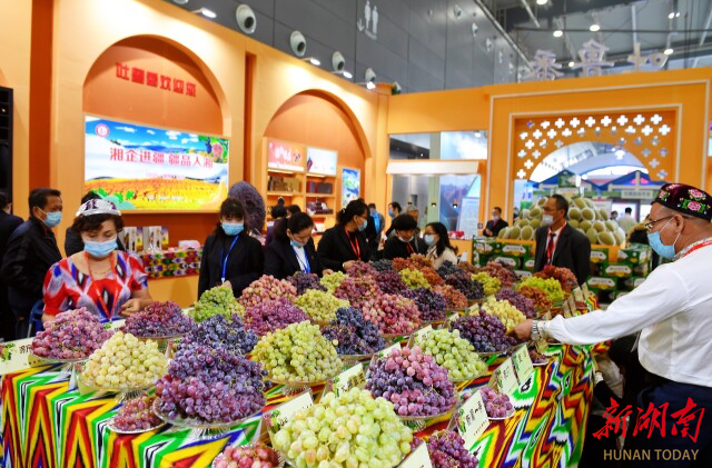 (2020年10月31日,消費(fèi)者在第22屆中部農(nóng)博會(huì)新疆展區(qū)選購(gòu)葡萄。湖南日?qǐng)?bào)記者徐行、唐俊攝)
