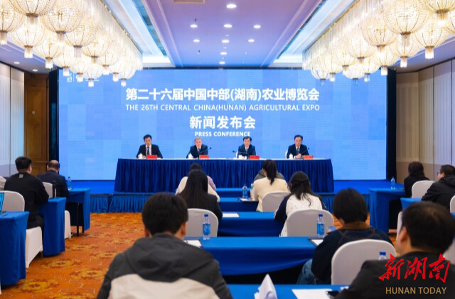 (11月4日,第26屆中國(guó)中部(湖南)農(nóng)業(yè)博覽新聞發(fā)布會(huì)。湖南日?qǐng)?bào)記者傅聰攝)
