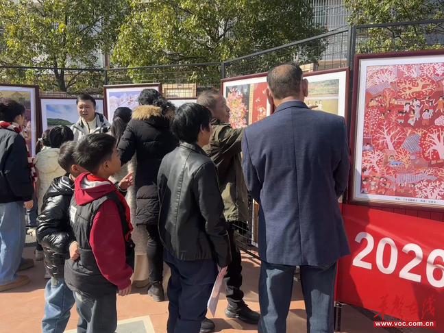 活動現場,美術、攝影及非遺畫展率先拉開帷幕。色彩絢麗的剪紙非遺作品、定格鄉村發展變遷的攝影佳作、充滿童真童趣的學生美術創作整齊陳列,吸引了大批師生駐足觀賞。大家或圍在展板前輕聲交流畫作細節,或拿出手機記錄下心儀的作品,在藝術熏陶中感受文化魅力。